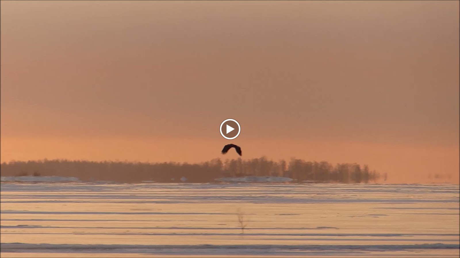 Rencontre avec un Pygargue à queue blanche qui se nourrit des restes laissés sur la glace par les pêcheurs.